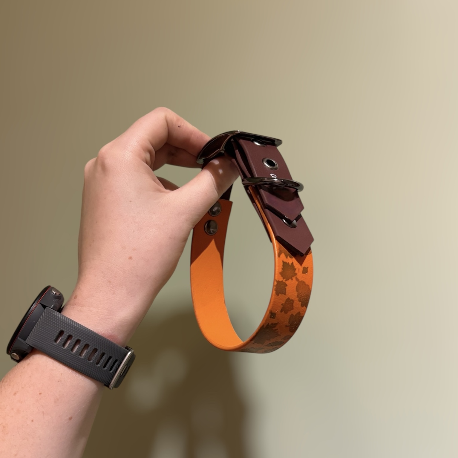 Fabriqué avec des matériaux de haute qualité, il offre une excellente résistance au quotidien tout en restant doux et agréable à porter pour le chien. Sa sangle décorée de feuilles d’automne est pensée pour être à la fois esthétique et durable, assurant que les couleurs restent vibrantes même après de nombreuses sorties. Le motif, fin et équilibré, capture parfaitement l’esprit de la saison : un mélange de chaleur, de calme et de simplicité raffinée.