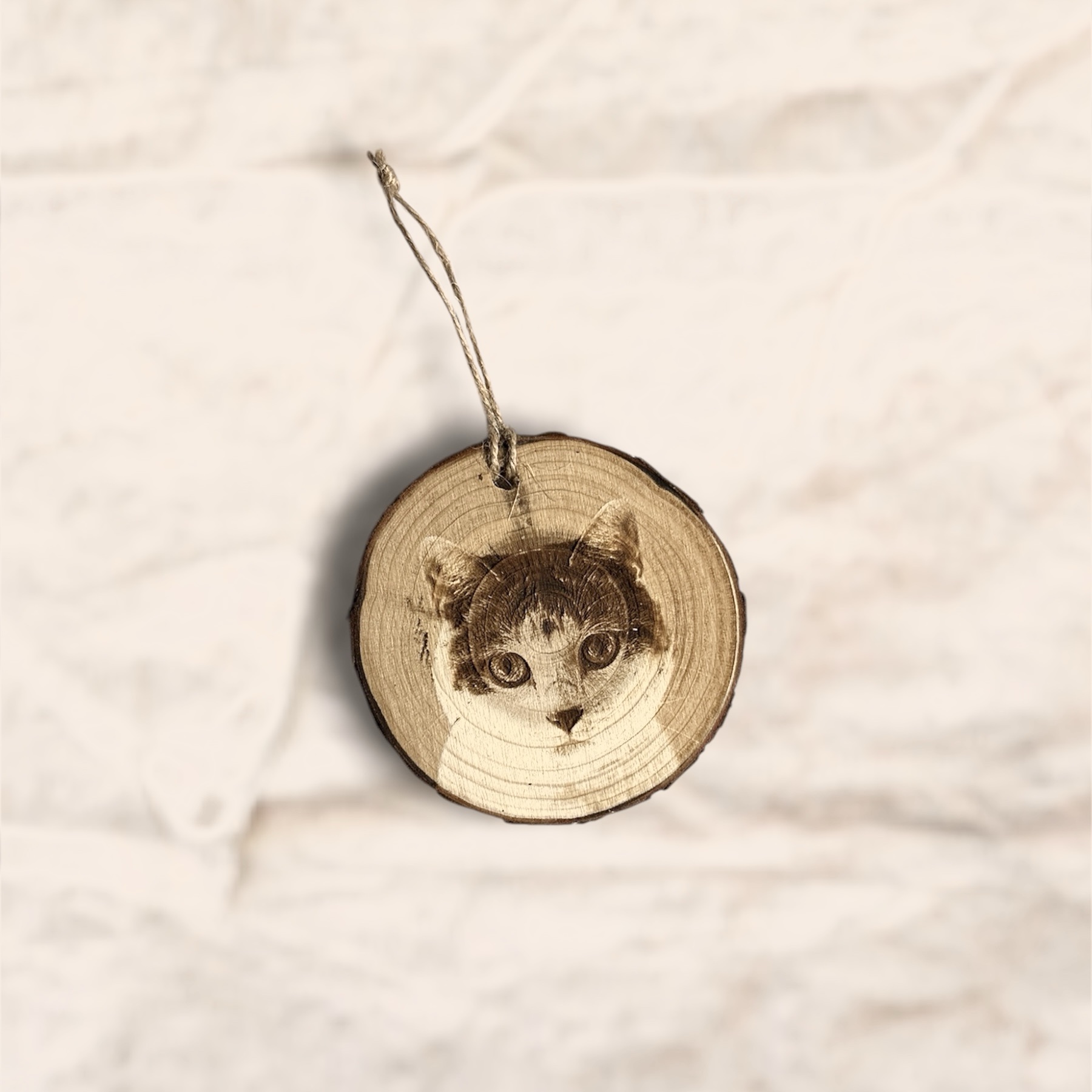 Fabriqué avec soin dans notre atelier, chaque Rondin de Noël est gravé à la demande, à partir de ta photo. Nous utilisons des procédés précis pour que les détails du portrait ressortent avec douceur et réalisme, sans altérer la texture du bois.